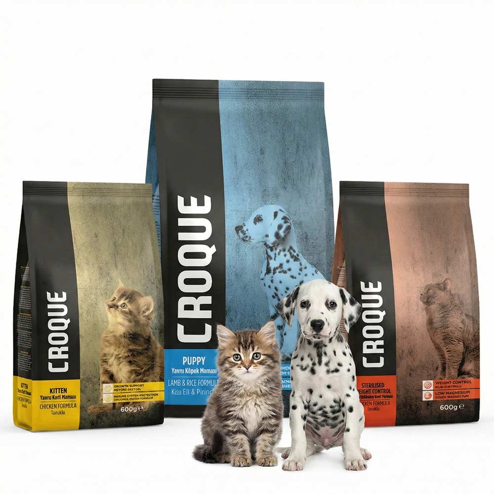 Croque, kedi ve köpeklerin günlük beslenme ihtiyaçlarını karşılamak üzere geliştirilmiş, pratik ve dengeli formülasyonlara sahip bir mama serisidir. Farklı ırk ve yaşam evrelerine uygun ürün seçenekleriyle, günlük kullanıma yönelik erişilebilir bir beslenme çözümü sunar.